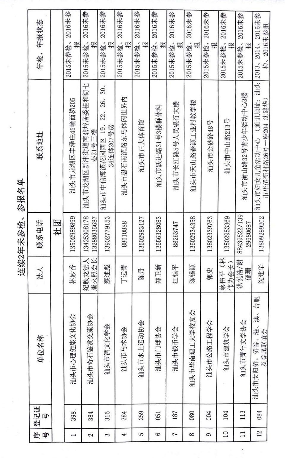 汕头市民政局关于要求连续2年以上(含2年)未参加年检年报的社会组织限期整改的通知