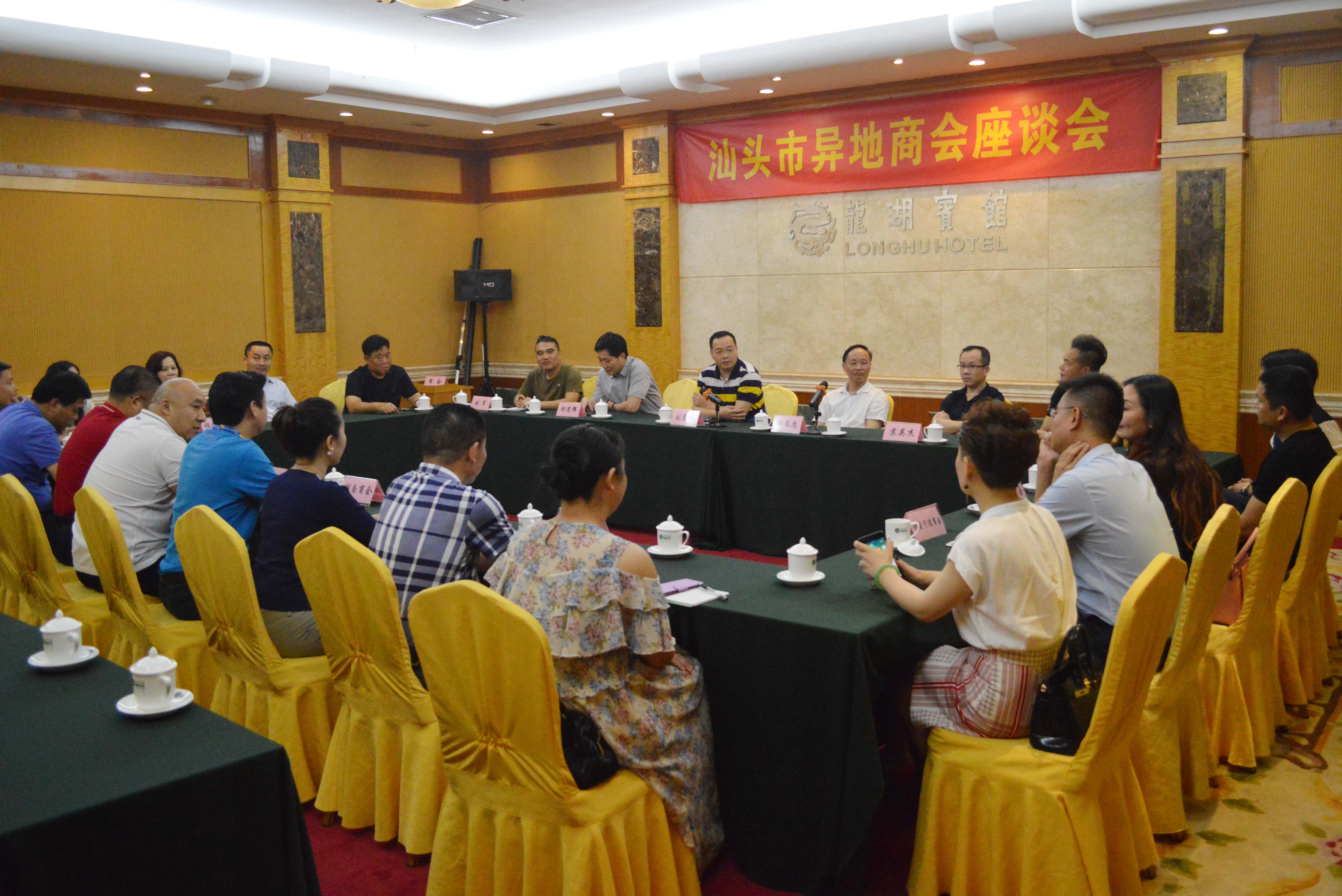 6月14日,由汕头市民政局,社会组织总会牵头组织召开的全市异地商会座谈会在该市龙湖宾馆举行,汕头市江西、湖北、湖南、河南、福建、四川、山东、安徽、饶平、江西都昌、福建宁德、浙江温州等12家异地商会会长、秘书长参加会议。